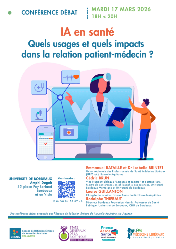 This discussion will be moderated by ERENA, the Nouvelle-Aquitaine Ethics Reflexion Space.