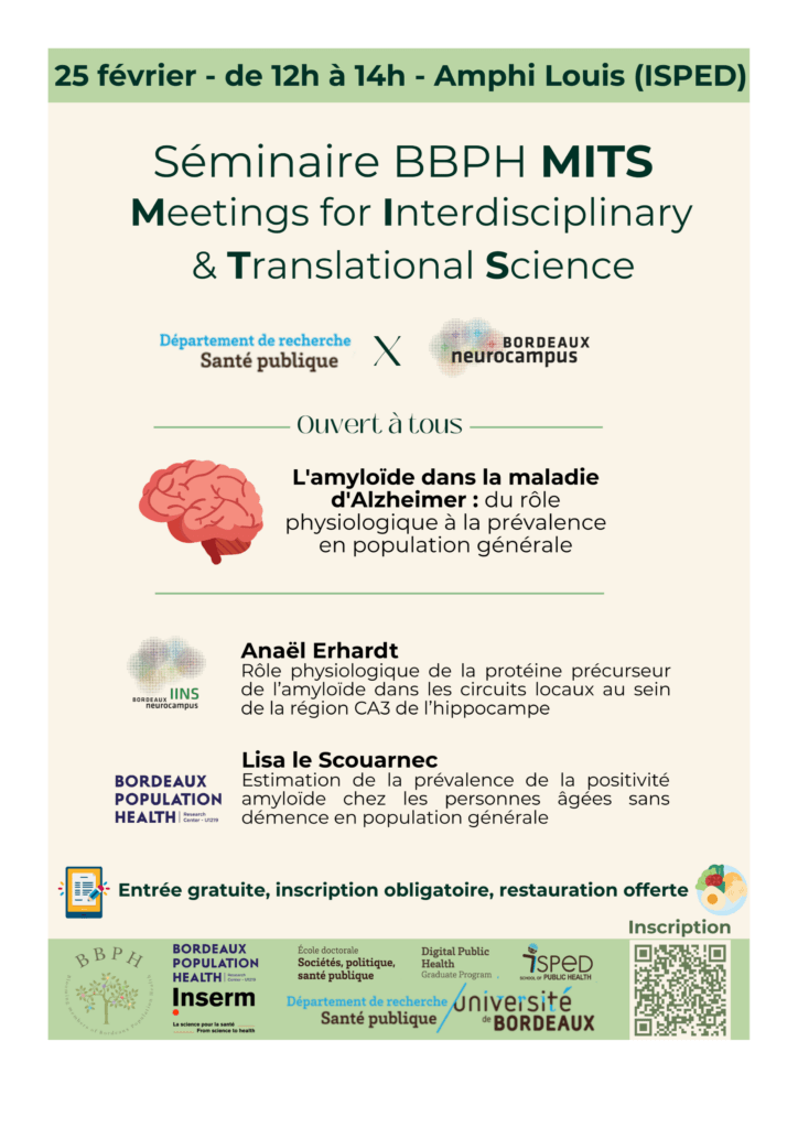 – Lisa Le Scouarnec : PHD student at BPH / Department of public health :Estimating the prevalence of amyloid positivity in elderly people without dementia in the general population.