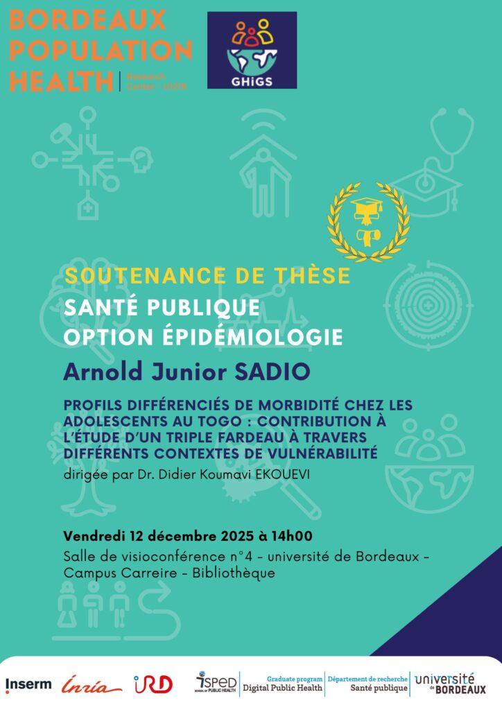RetourArnold SADIO TIOKAND se soutiendra sa thèse en santé publique – option épidémiologie réalisée sous la direction du Dr. Didier Koumavi EKOUEVI intitulée :