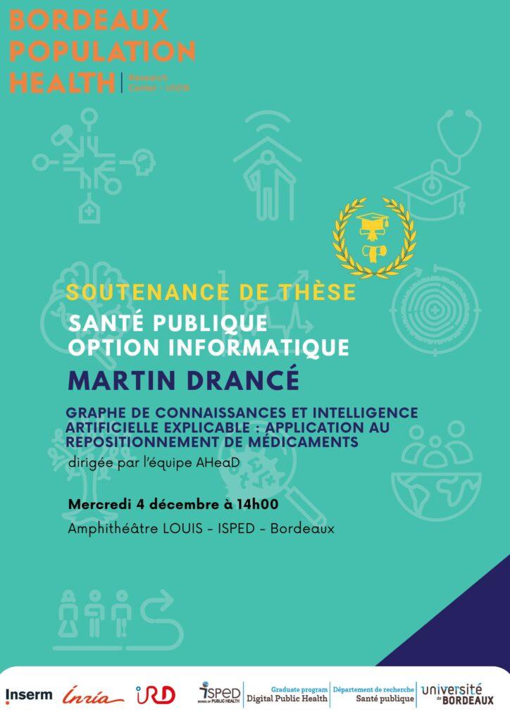 RetourMartin DRANCE will present his thesis in public health, with a focus on information technology, conducted under the supervision of the AHeaD team and entitled: